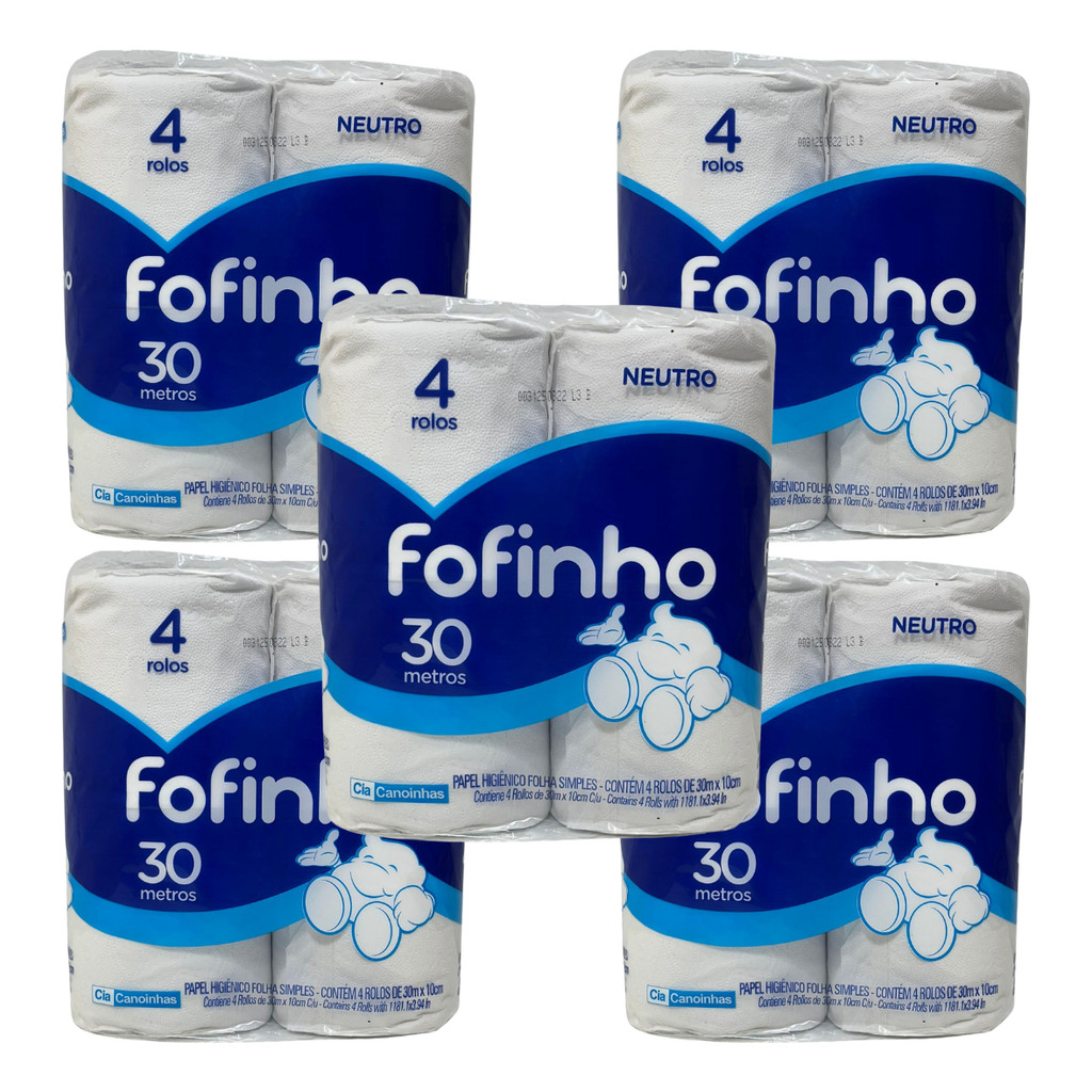 Papel Higiênico Fofinho Simples 05 Pct C/4 Rolos Neutro