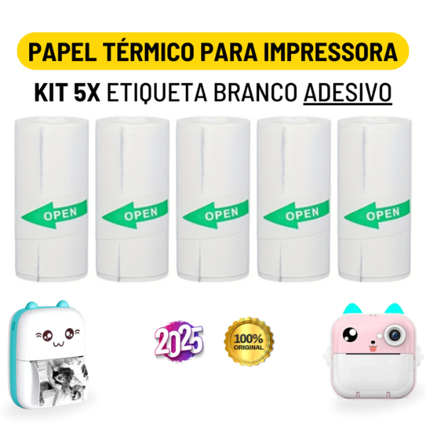 Comprar na ShopeeKit 5 Bobina Etiqueta Térmica Adesiva Branco Rolo Para Mini Impressora Portátil a Prova De Água