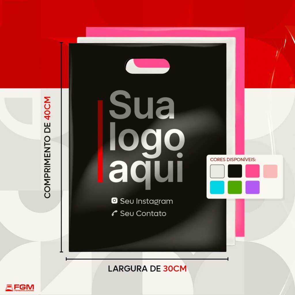 Sacolas Personalizadas Com Sua Logo - 30x40cm - Boca de Palhaço | Alça Vazada - 100/150/250 Unidades