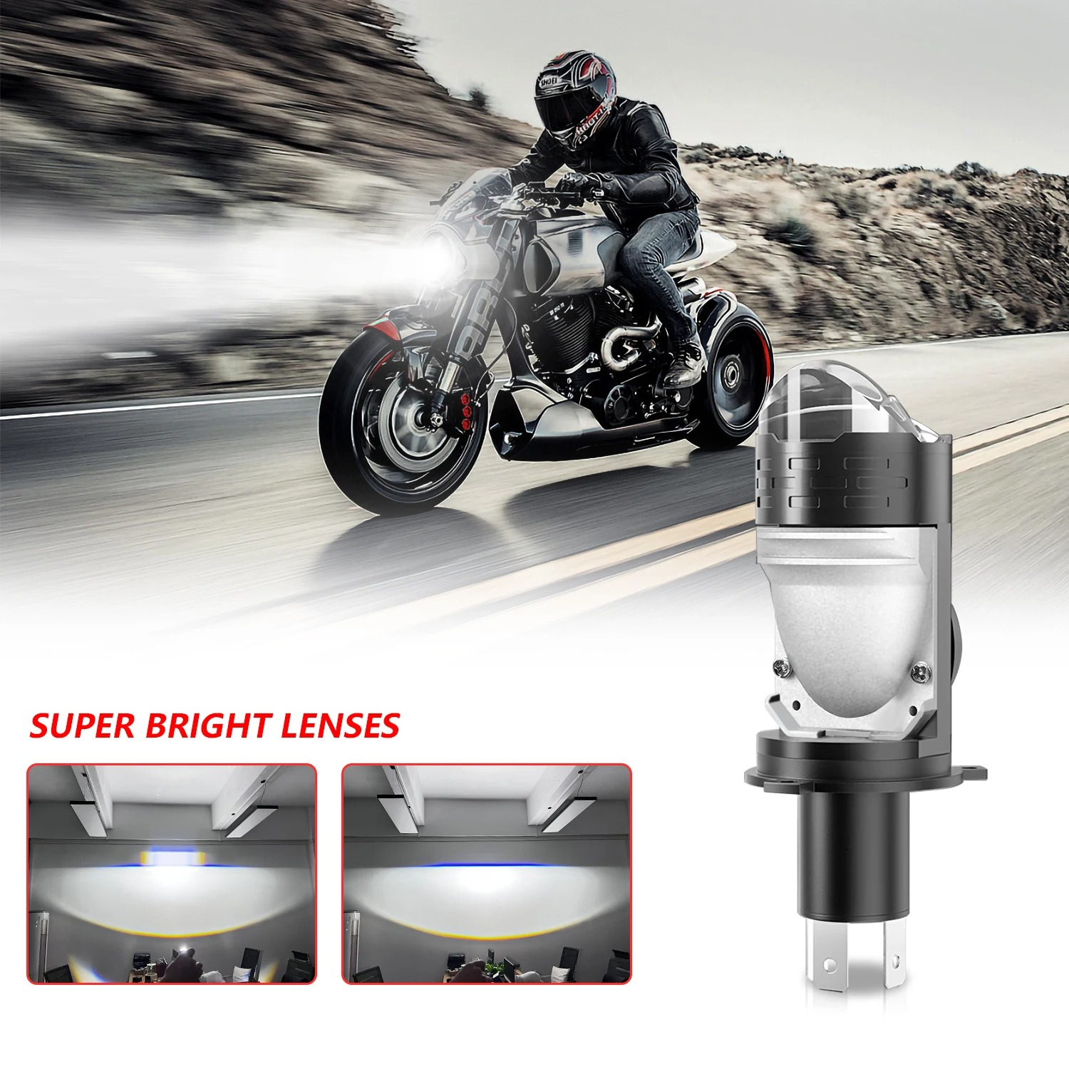 Comprar na ShopeeLâmpada de farol de moto de alta potência 12V 10000LM com lente brilhante | Soquete H4 BA20D