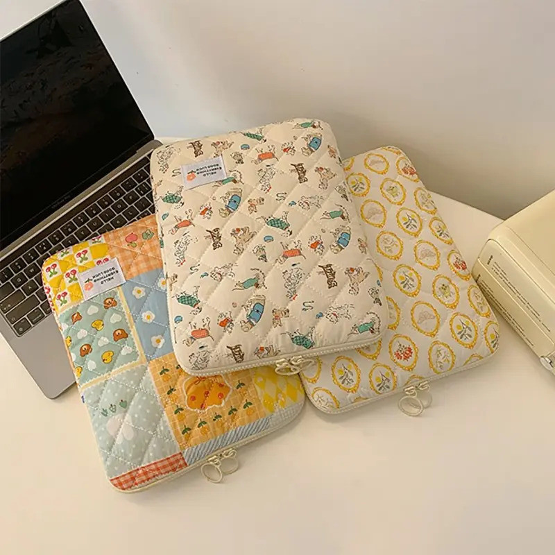 Flor de pelúcia iPad computador saco ins estilo Tablet saco de armazenamento 11/15 Polegada Notebook caso protetor bege