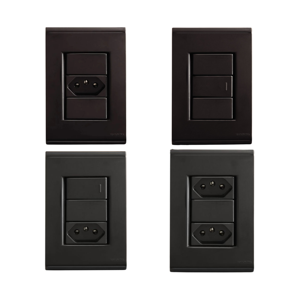 Comprar na ShopeeConjunto Placa Tomadas Interruptor 10A 250V 20A/250V Tramontina Linha Liz Grafite
