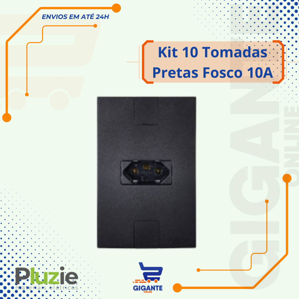 Kit 10 Conjunto Embutir 4x2 1 Tomada Preto Fosco 2p+t 10A Pluzie 250v