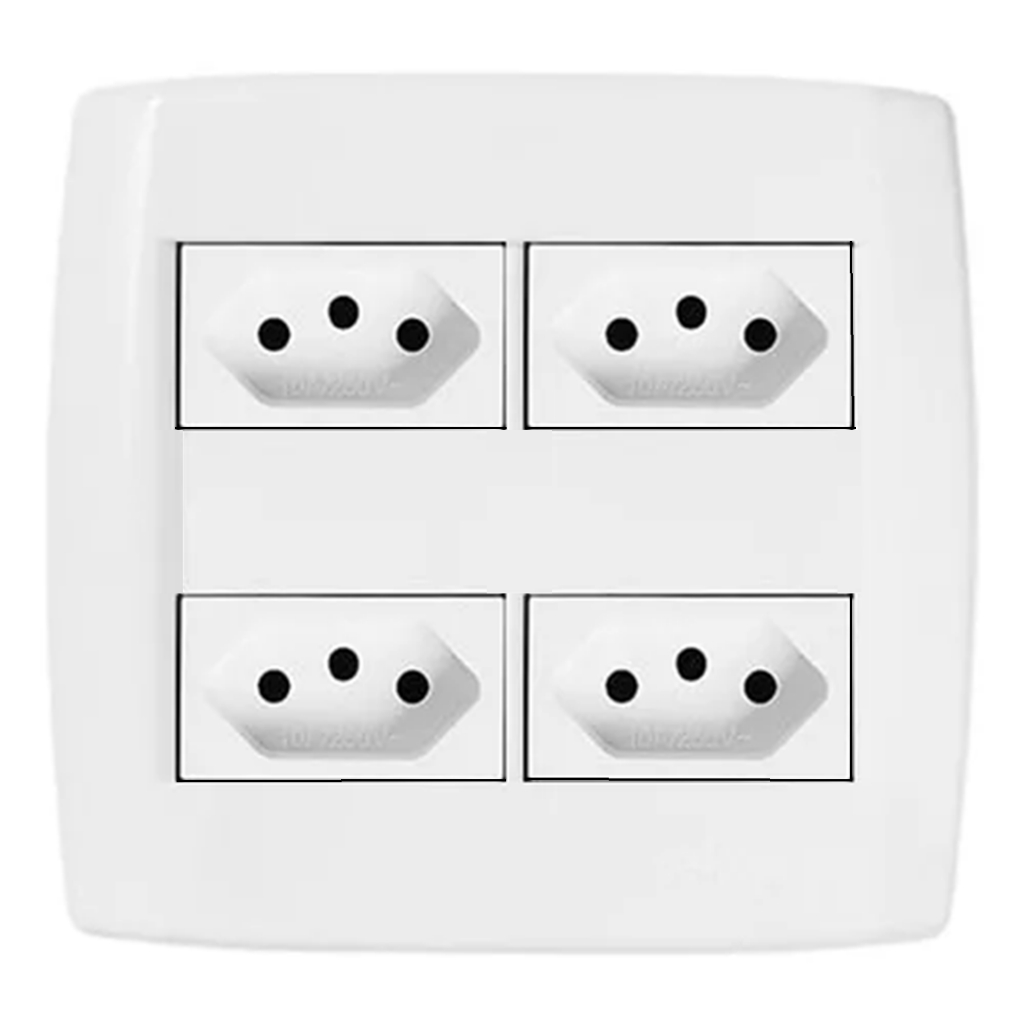 Tomada 4x4 com 4 Tomadas Modular Pluzie Pluzi Branca