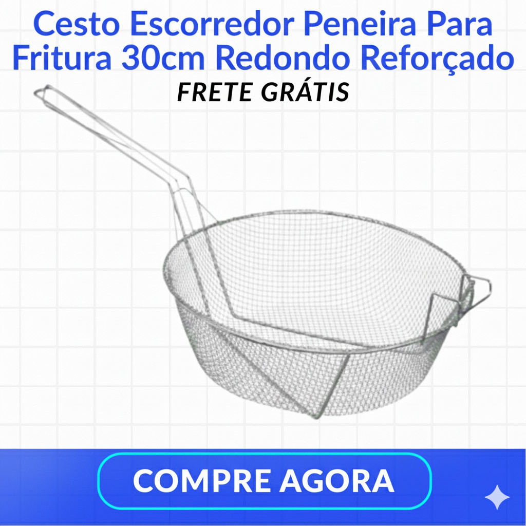 Cesto Escorredor Peneira Fritura 30cm Redondo Reforçado Fritadeira Profissional Cozinha Restaurante