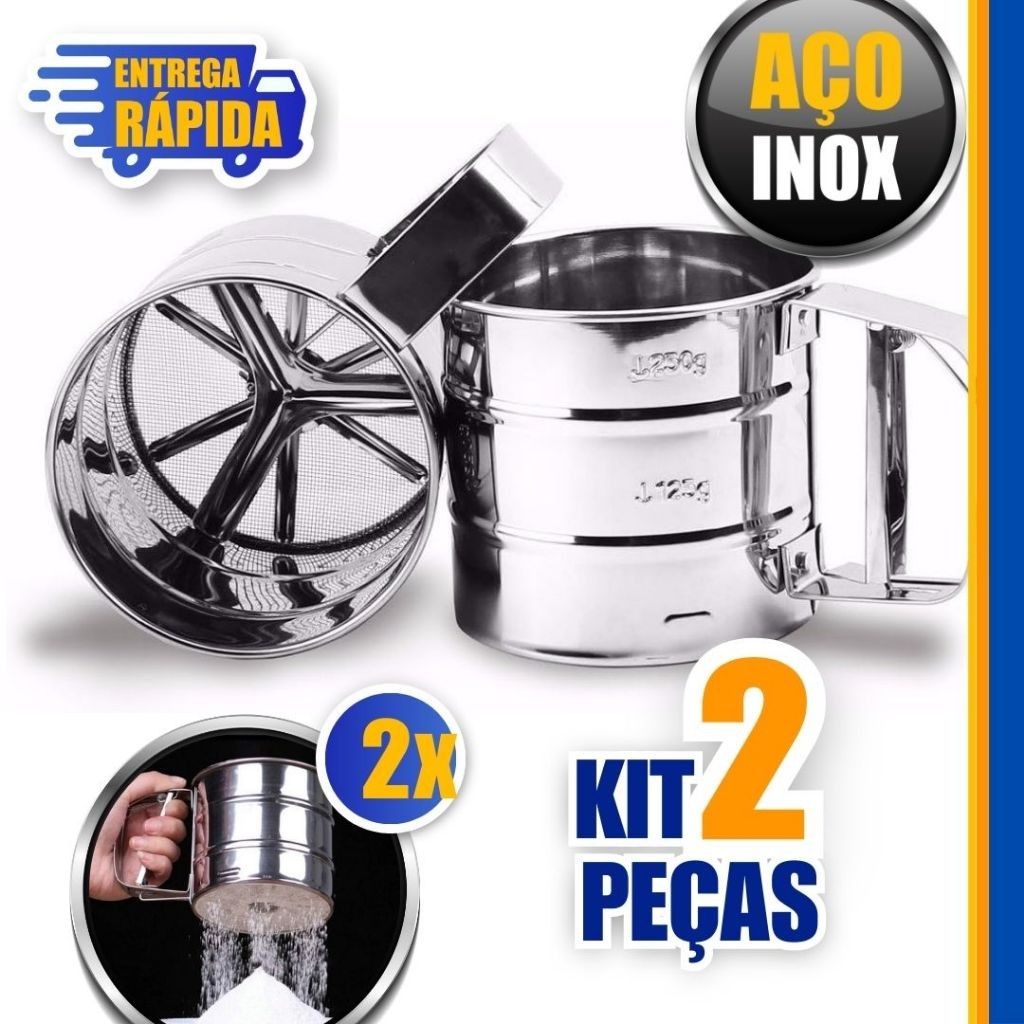 KITs 2 Polvilhador Peneira Caneca de farinha inox com gatilho 10x5x9 cm