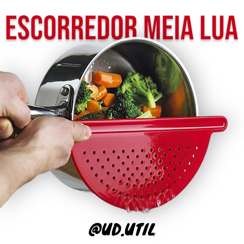 Escorredor de Massas, Frutas e Legumes em Formato de Meia Lua - Escorra Direto Da Panela