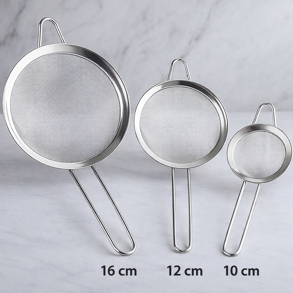 Comprar na ShopeeKit De 1 até 3 Peneiras de Aço Inox –Tamanhos P, M e G (10, 12 e 16cm) Resistentes Fáceis de Limpar