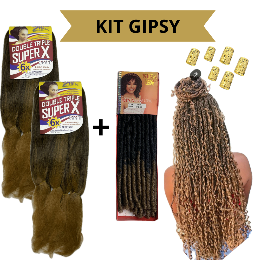 Comprar na ShopeeKit Tranças Gypsy 1 Nina Softex Crochet + 2 Jumbo Super X Zhang Hair + Anéis