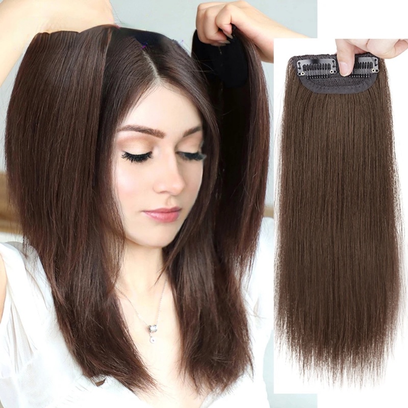 Comprar na ShopeePeças De Cabelo Fofas Sem Costura Invisíveis Patch Women Pads Sintéticos Lisos Para Cabelos Meninas Aumento Do Volume Espessado Extensões Clip Top E Side