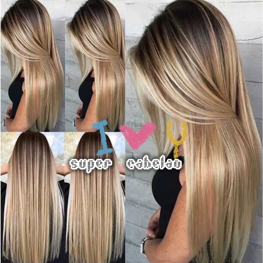 T28t613L - Aplique Mágico Cabelo Invisível Tiara transparente linha silicone Fio cor loiro mechas ombre hair liso