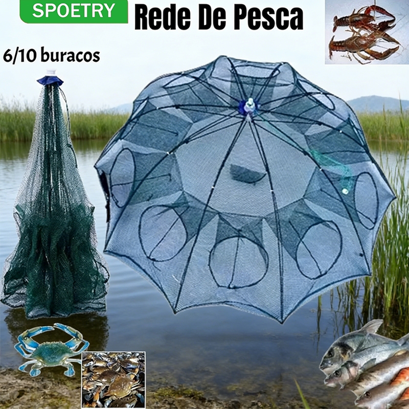 Rede De Pesca Gaiola De Camarão Dobrável Nylon Automático Guarda-chuva Forma Armadilha Para Peixes Rede Dobrável