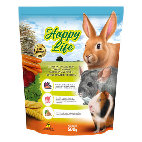 Ração Para Coelho 500g Happy Life Alimentação Roedores