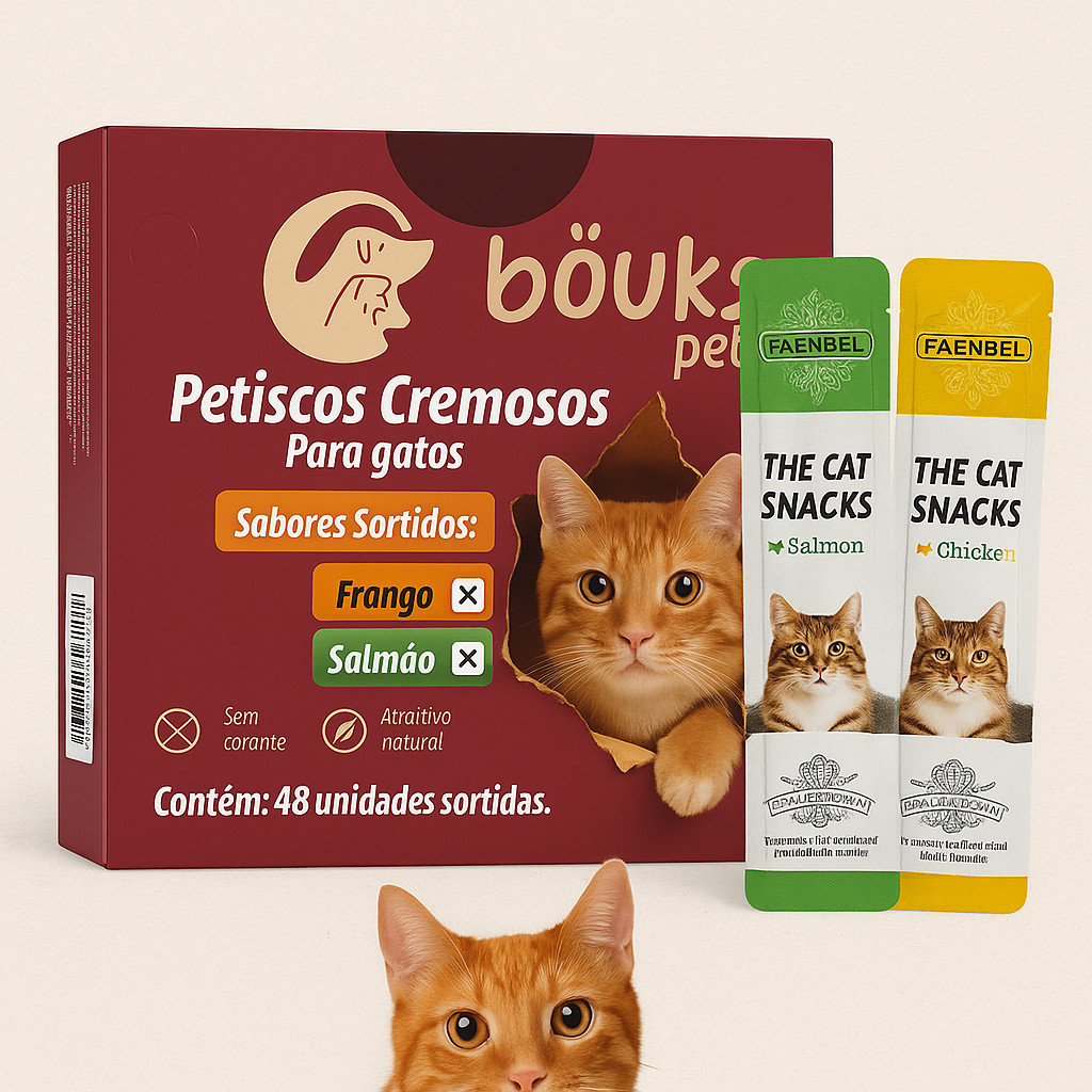 Kit Petiscos Gatos 48 Unidades – Frango + Salmão