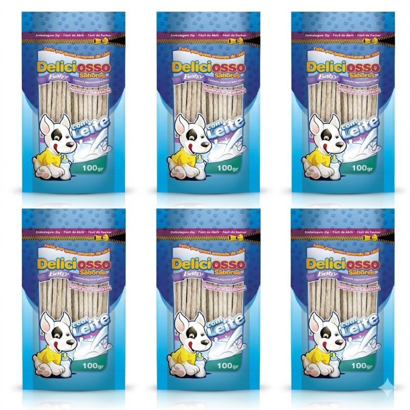 Osso Deliciosso Baby Palito Fino Leite para Cães Filhotes 100g (Kit com 6 unidades)