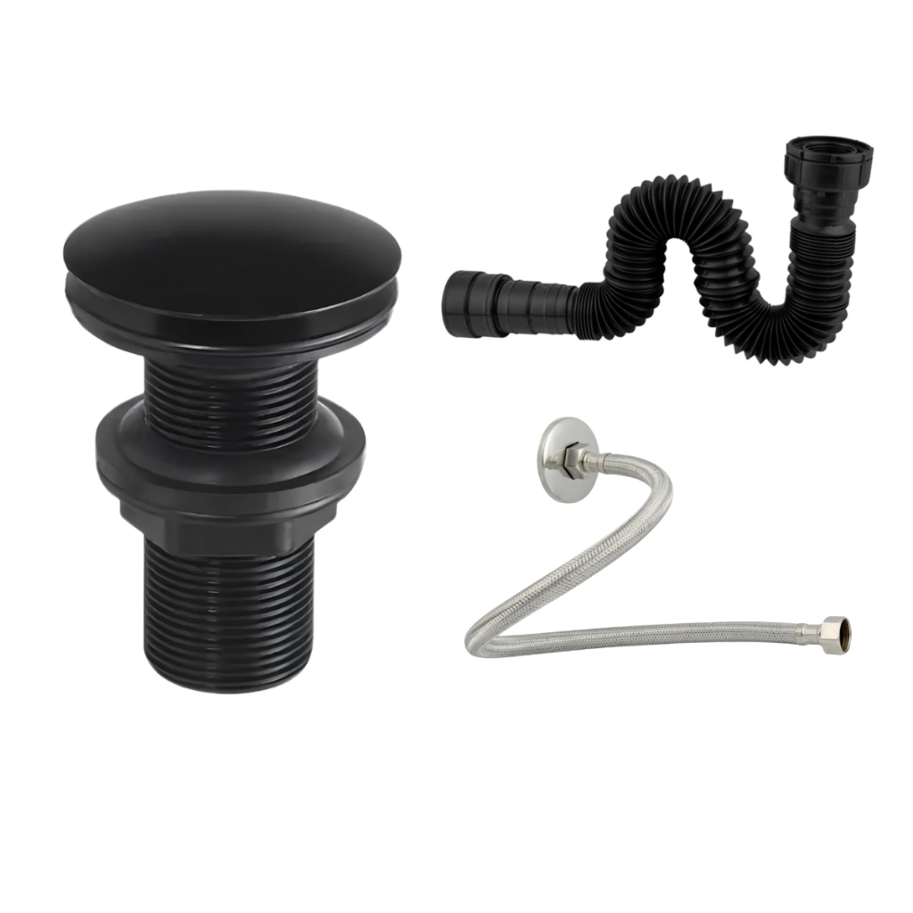 Comprar na ShopeeSifão Pia Tanque + Engate 40cm + Válvula Click 7/8 Pia Banheiro Preto Fosco ABS De Engenharia