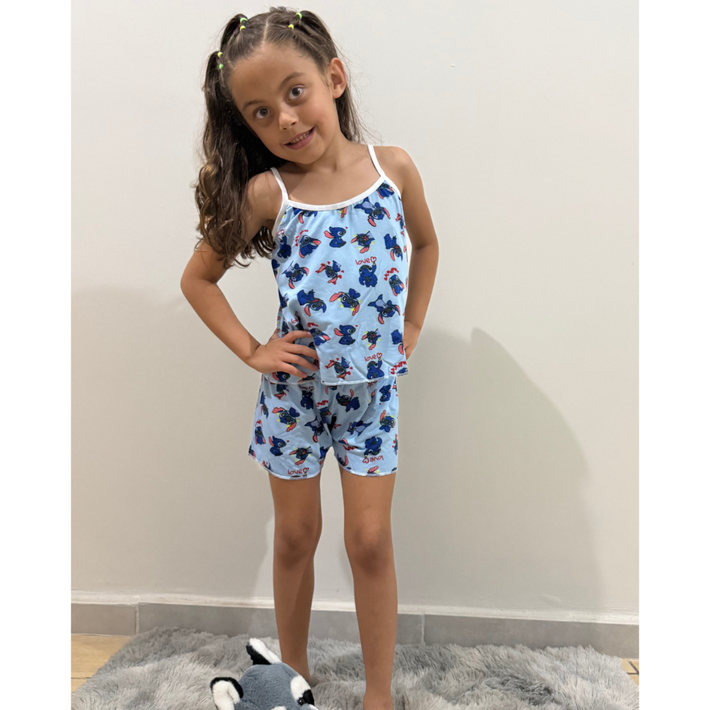 Comprar na ShopeePijama satin Feminino Infantil Menina Short Dool de Meia Manga Stitch Festa Personagens Baby Doll Roupa De Dormir
