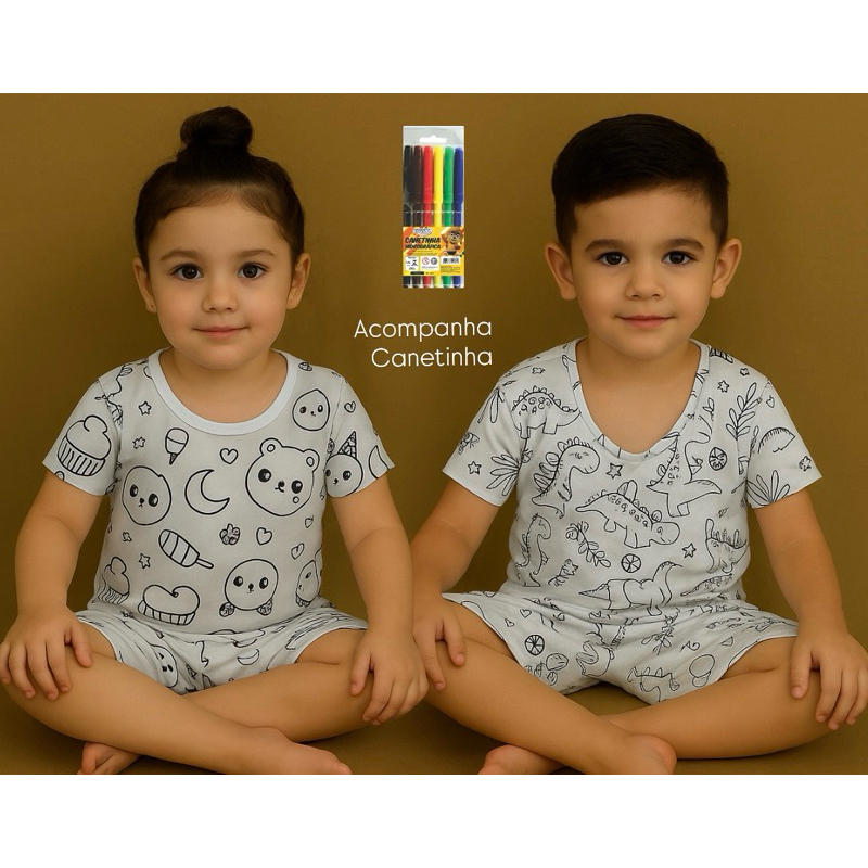 Comprar na ShopeePijama infantil de colorir lavável acompanha canetinha TAM 2 ao 14