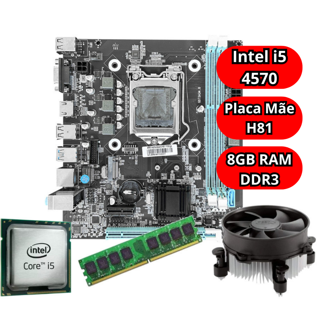 Kit Upgrade Processador Intel i5 4570 Placa Mãe H81 8GB RAM DDR3 Cooler