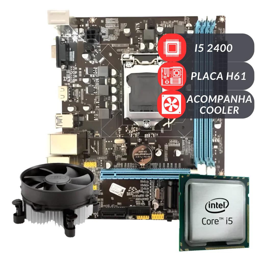 Kit Upgrade Home Office Escritório Processador Intel I5 2400 Placa Mãe h61 Sem Memória RAM C/ Cooler