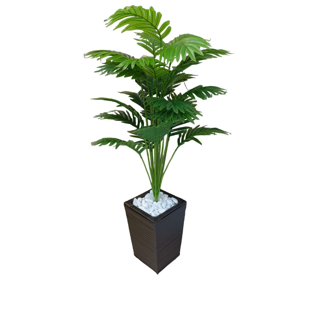 Planta Artificial Palmeira 18 ou 24 Folhas Enfeite com Vaso Decorativo em Fibra Sintética Marrom Liso