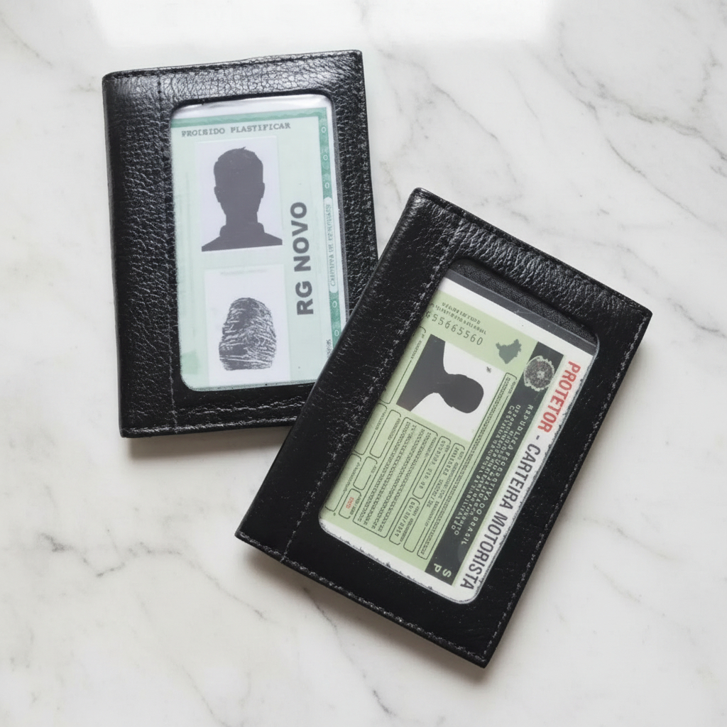 Porta Documento De Carro E Documentos Couro Legitimo Com Visor Frontal e Plastificações Catálogo