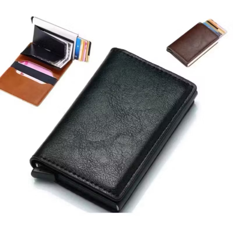Comprar na ShopeeRfid Mini Slim AlumíNio Auto POP Up Presente De AniversáRio Carteira Para Homens Porta CartãO De Couro PU