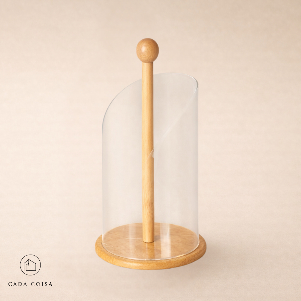 Comprar na ShopeeSuporte Porta Rolo de Papel de Toalha de Bambu Com Protetor de Acrílico