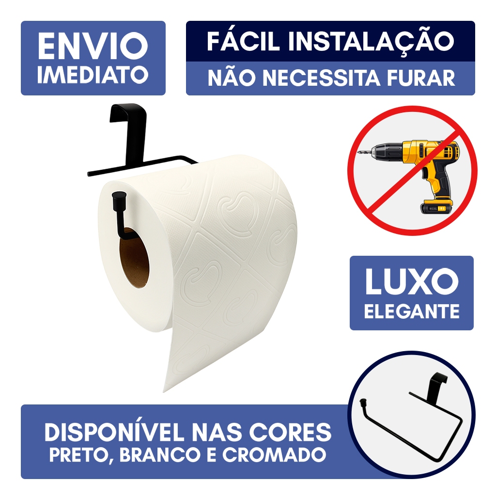Comprar na ShopeeSuporte Porta Papel Higiênico Sem Furo Simples Encaixe Caixa Acoplada Resistente Papeleira Premium