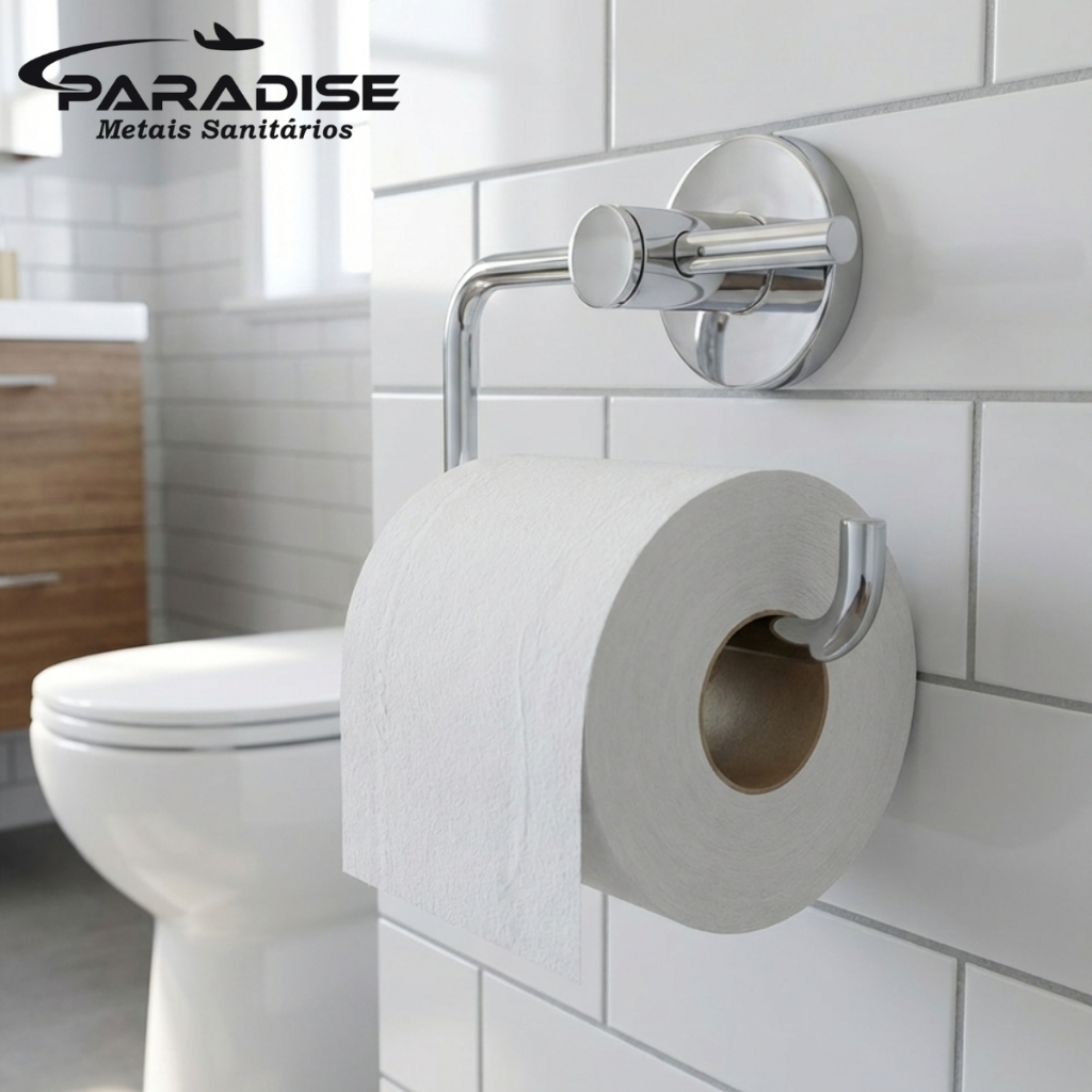 Porta Papel Higiênico Dupla Fixação Cromado Banheiro sem Tampa Aço Inox Stander