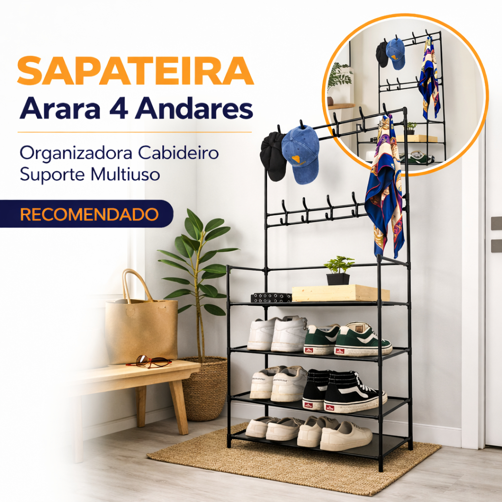 Comprar na ShopeeSapateira Arara 4 Andares Organizadora Cabideiro Suporte Multiuso Sapato Tenis Roupa Quarto Armários