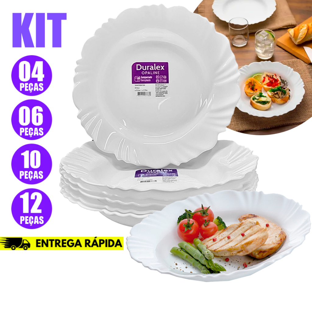 Comprar na ShopeeKit 12/04 Pratos Vidro Fundo Duralex Pétala Opaline Redondo Brilhante Jantar e Almoço Buffet