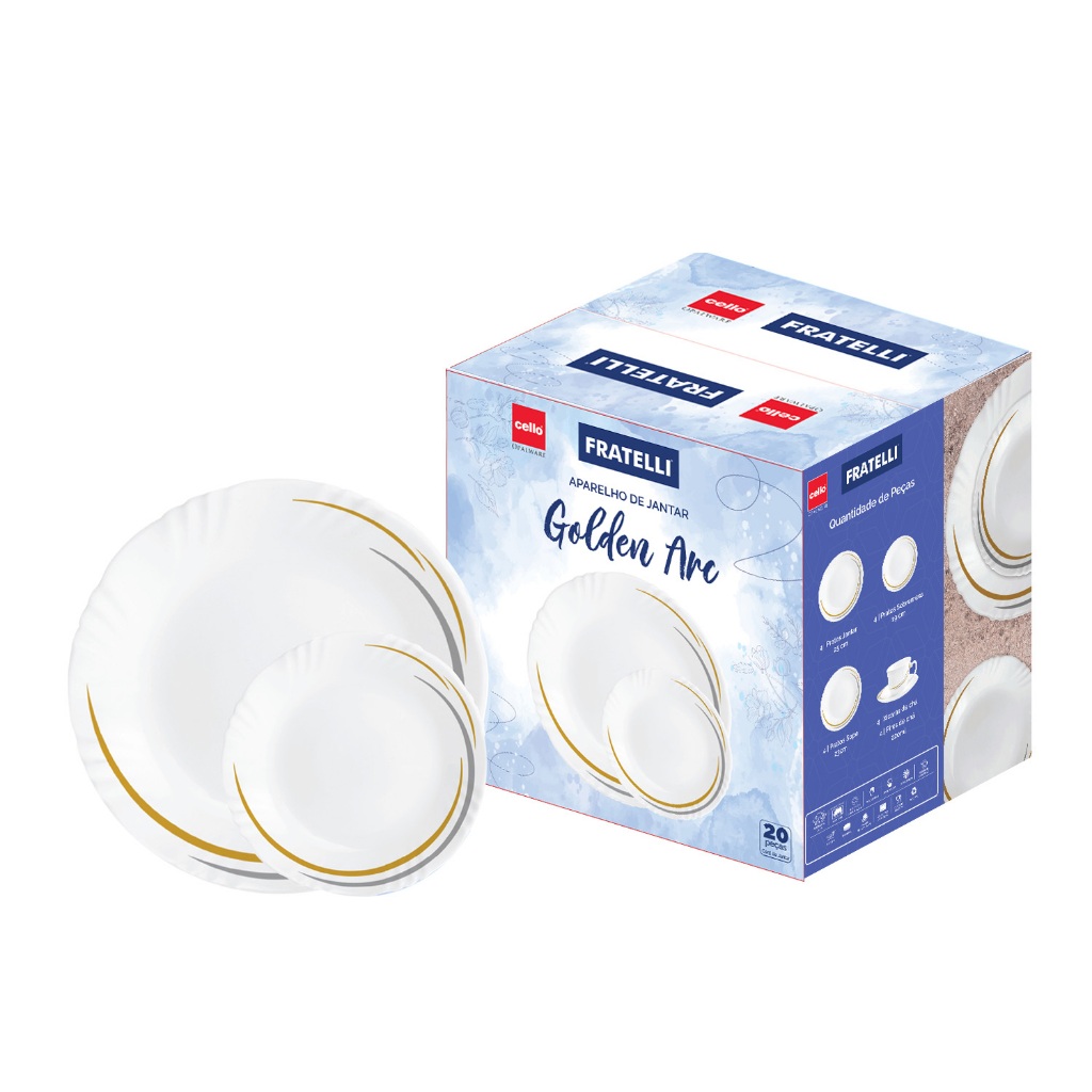 Jogo de Jantar Vidro 20 Peças Fratelli – Aparelho com Pratos e Xícaras para Chá e Refeições