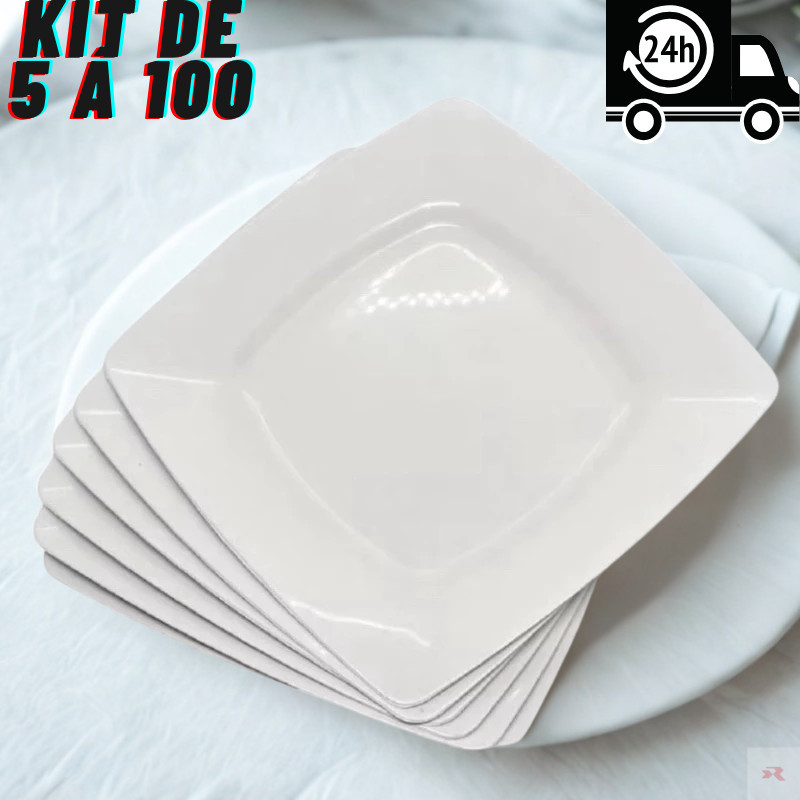Comprar na ShopeeKit 5,10,15, ou 20 Pratos Quadrados Refeição BRANCO(Plástico). Jantar/Almoço.