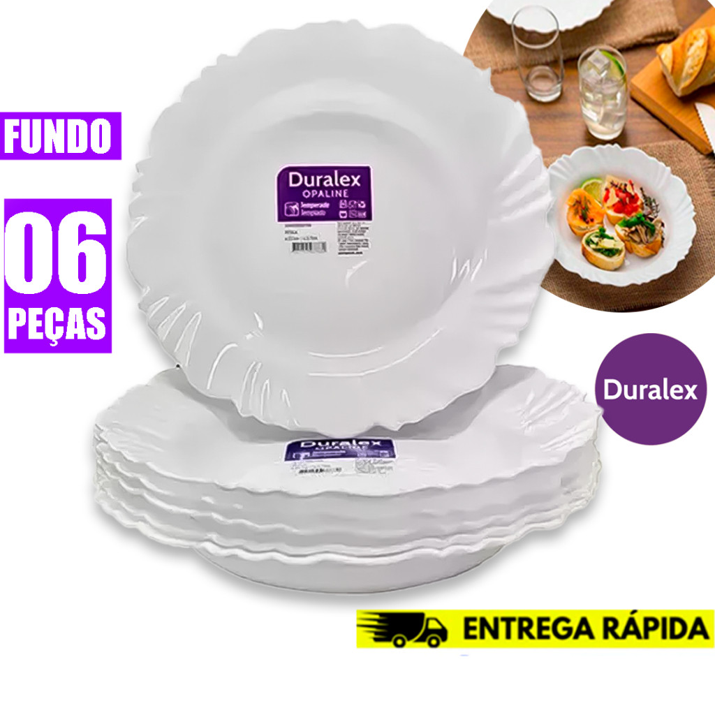 Comprar na ShopeeKit 6 Pratos Fundo Duralex Vidro Opaline Pétala Branco Circular 23.5CM Temperado- Resistente a risco