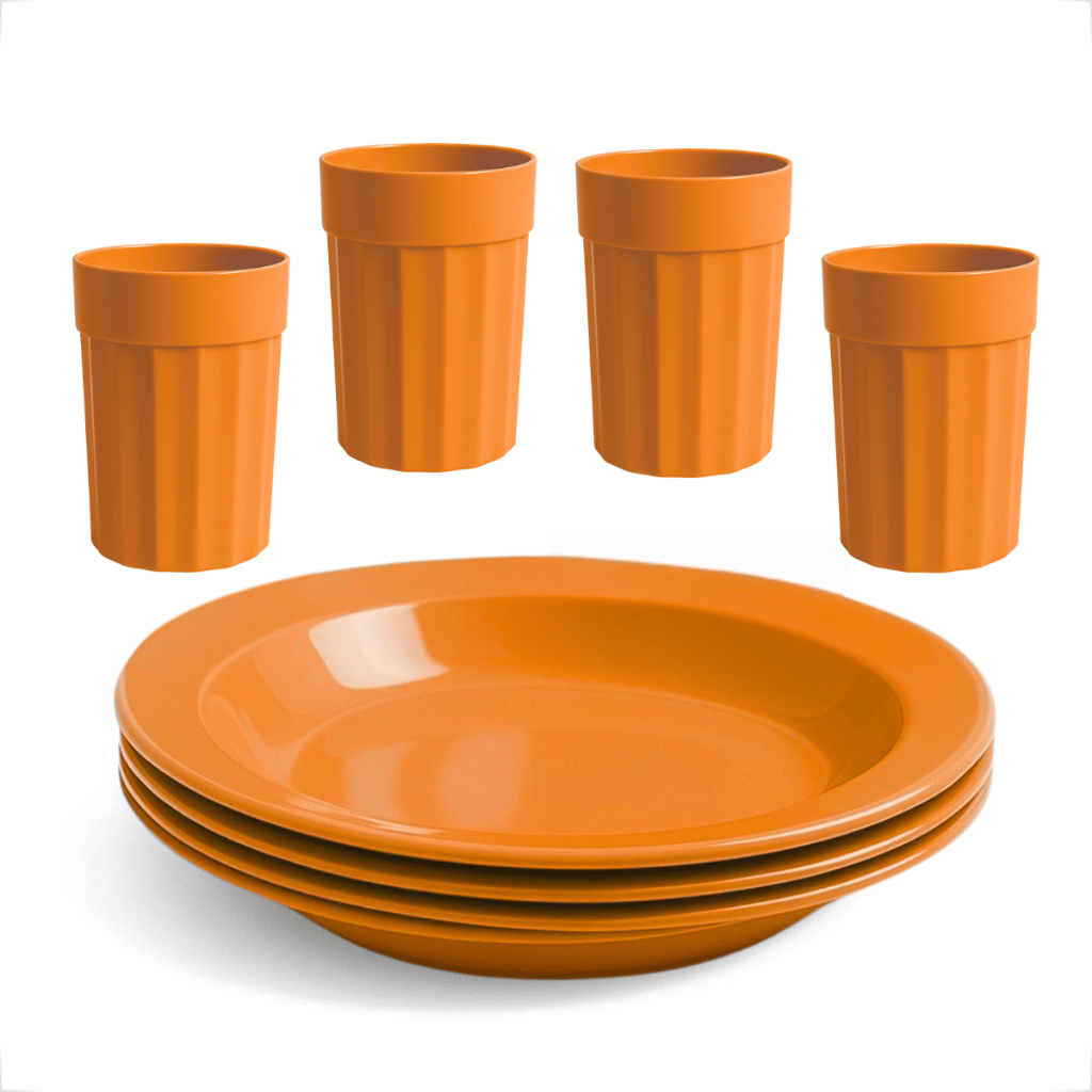 Kit Prático 4 Copos 350ml e 4 Pratos Plásticos – Uso Diário ou Escolar