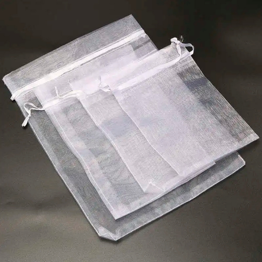 Kit 100 Saquinhos Organza 7x9 / 9x12 / 10x15 / 12x17 / 20x30 / 20x35 Branco Lembrancinha Natal Jóia Festa Casamento
