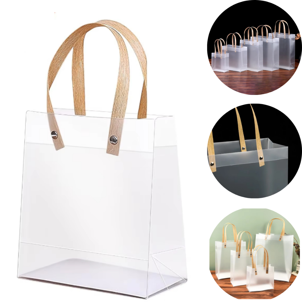 Comprar na ShopeeSacola Transparente Fosca de PVC com Alça - Pequena e Grande - 12 Peças