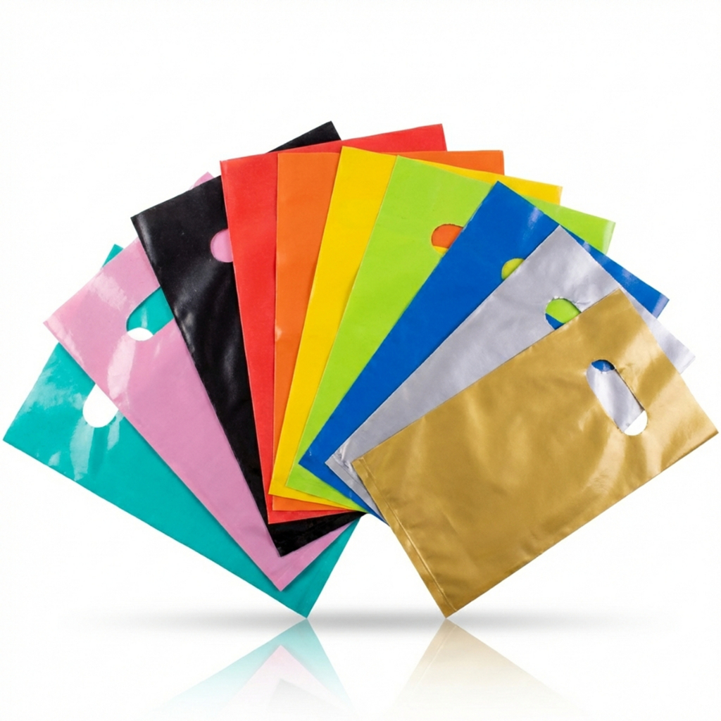 Comprar na ShopeeSacolas Plásticas Boca de Palhaço – Alça Vazada Loja, Várias Cores e Tamanhos, Pacote 1 kg