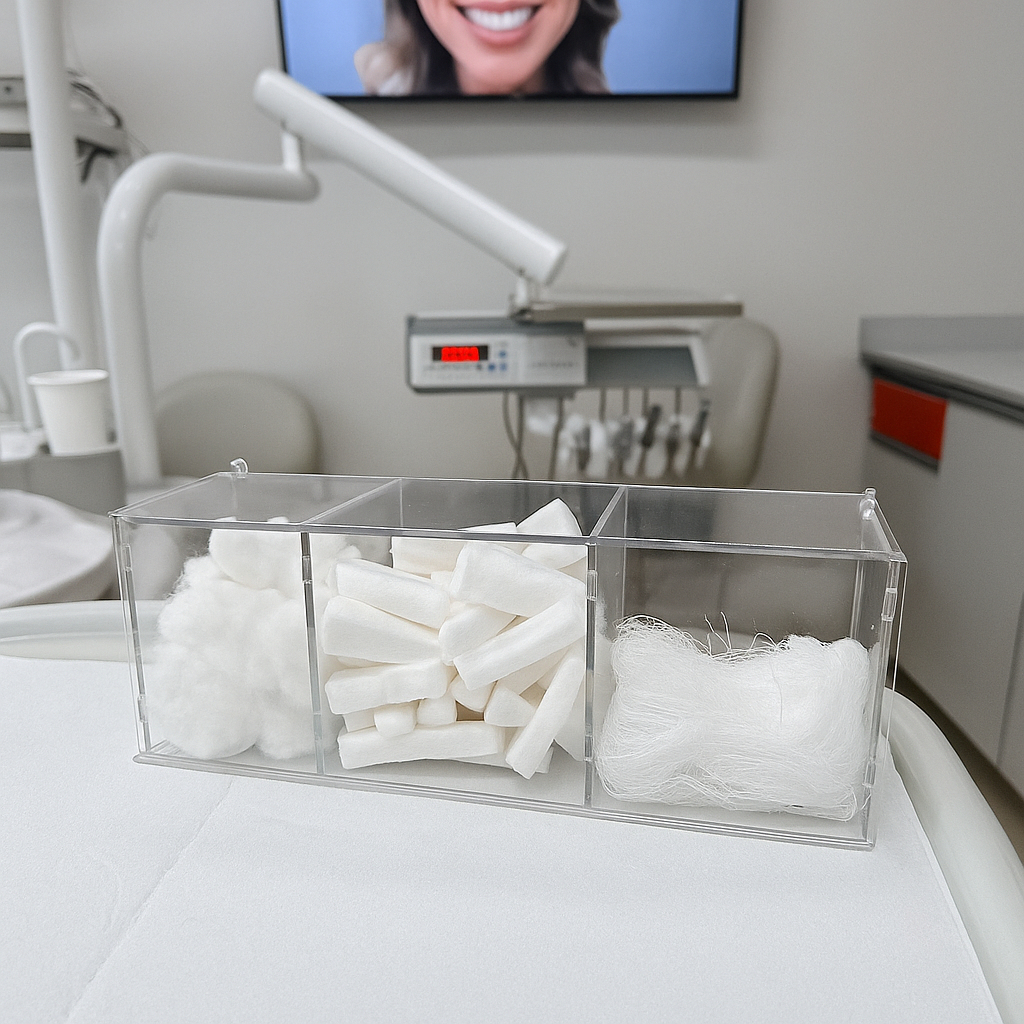 Comprar na ShopeePorta Suporte Odontológico Acrílico para Roletes, Gaze e Algodão em acrilico com Tampa muito Pratico