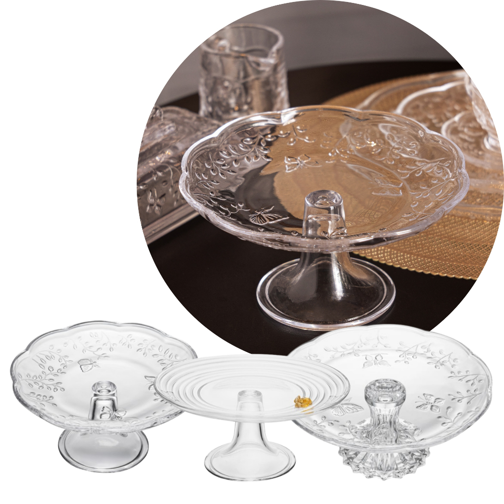 Comprar na ShopeePratos P/ Bolo Doces Torta C/ Pé New Butterfly E Little Bee 27 x 12cm e 19 x 9cm Cristal Lapidado Lyor