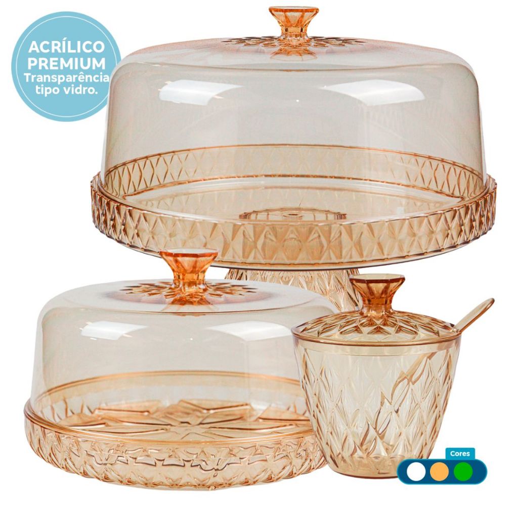 Comprar na ShopeeKit Boleira Borda Alta com Queijeira e Açucareiro Com Tampa Em Acrílico Grosso e Resistente