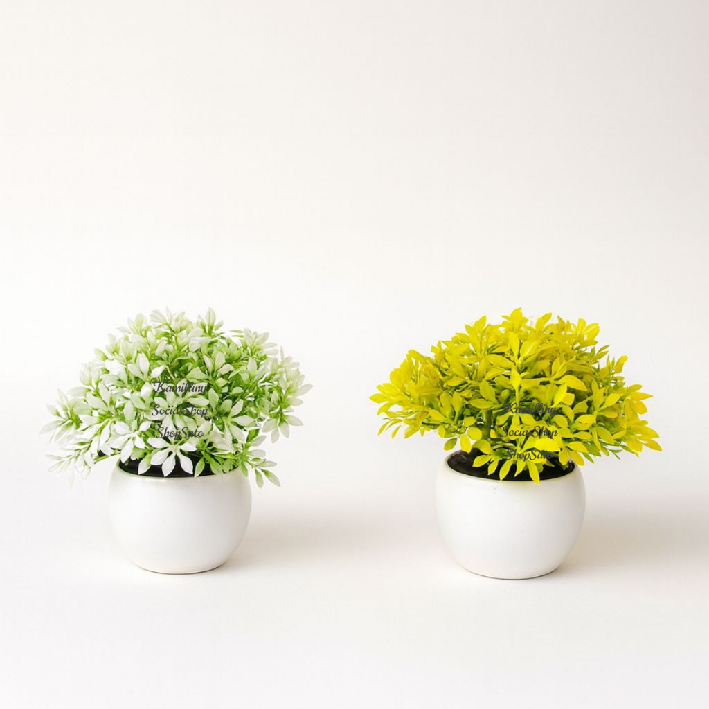 Arranjinho Mini Bonsai Bola com Vasinho Com Musgo Boca Ondulada Flores Artificiais Realistas, Enfeite Enfeite