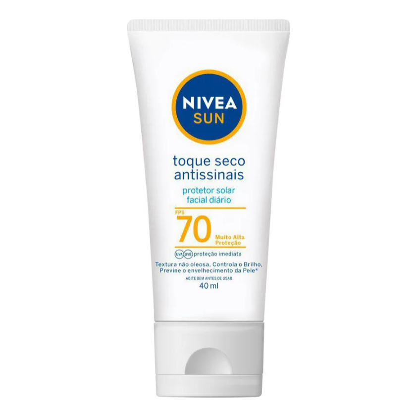 Comprar na ShopeePROTETOR SOLAR TOQUE SECO ANTISSINAIS FPS70 NIVEA SUN 40ML