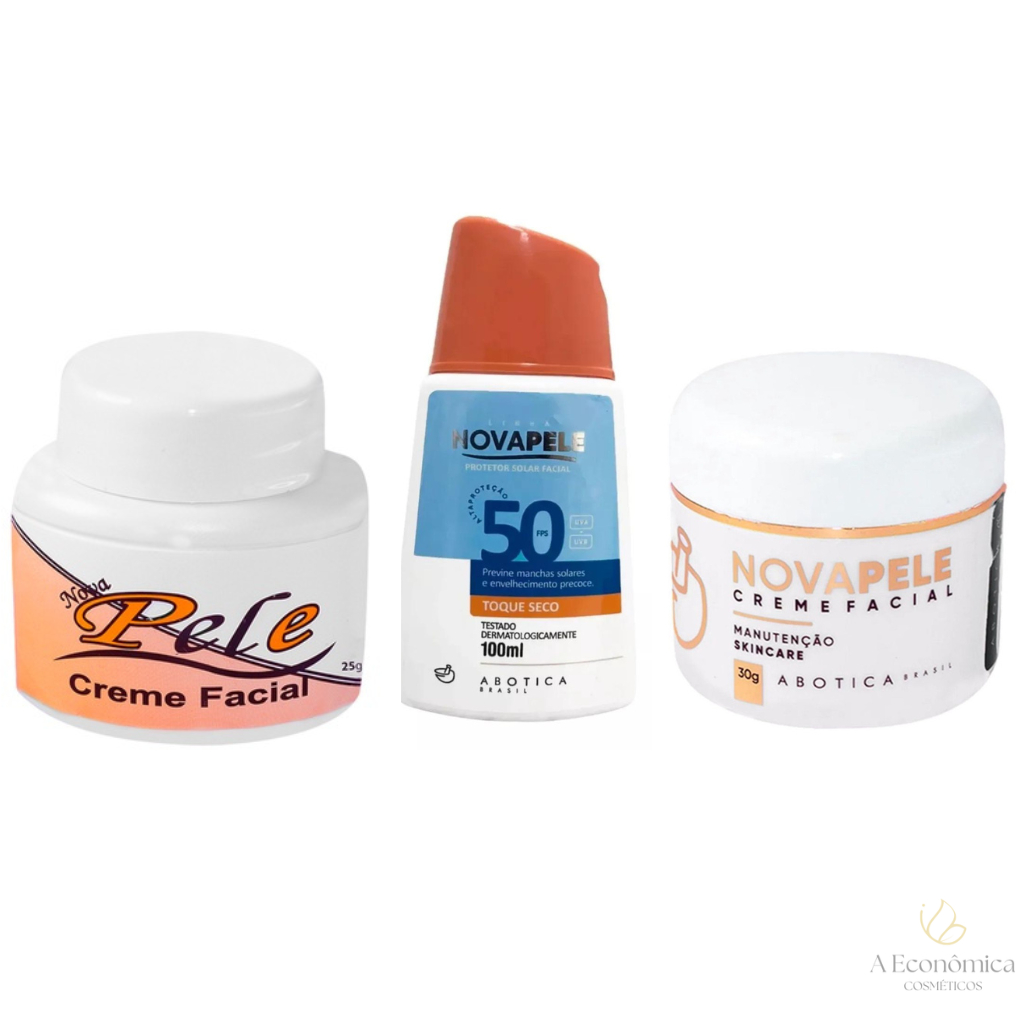 Comprar na ShopeeKit Nova Pele Creme Clareador 25g + Protetor Solar Fps 50 60g + Creme De Manutenção 30g