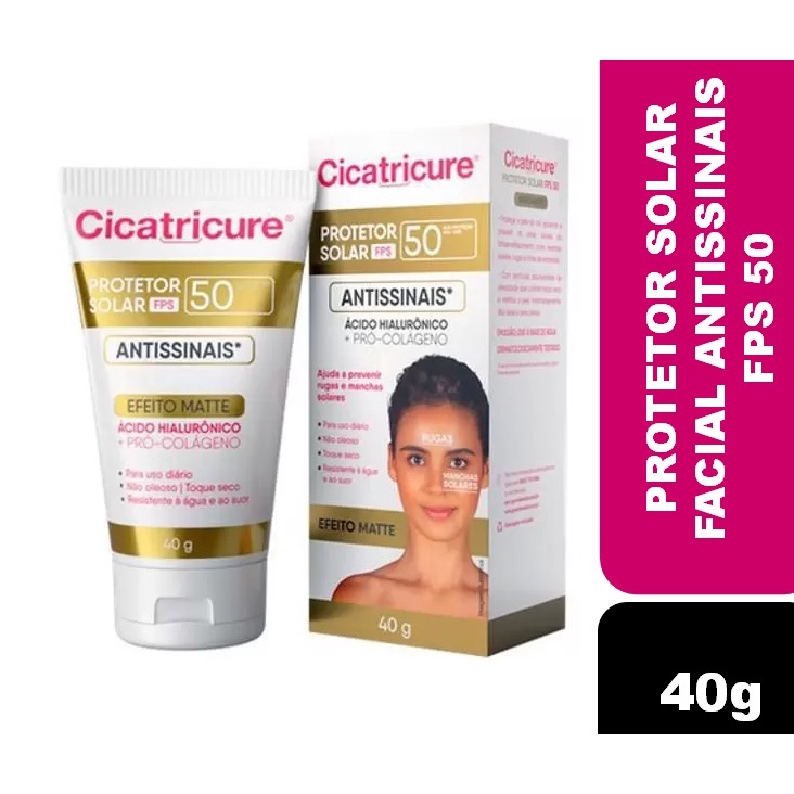 Comprar na ShopeeProtetor Solar Antissinais com Ácido Hialurônico e Pró Colágeno FPS 50 Cicatricure 40g