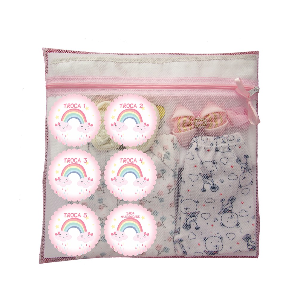 Kit Saquinho Maternidade 6 Unidades Zíper Rosa Bebê+ Tags Nuvem Menina