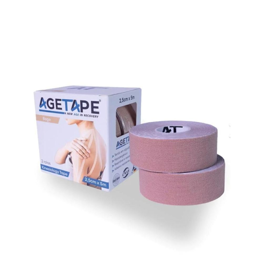 Comprar na ShopeeFITA AGETAPE KINESIOLOGY TAPE 2 ROLOS DE 2,5CM X 5M COR BEGE