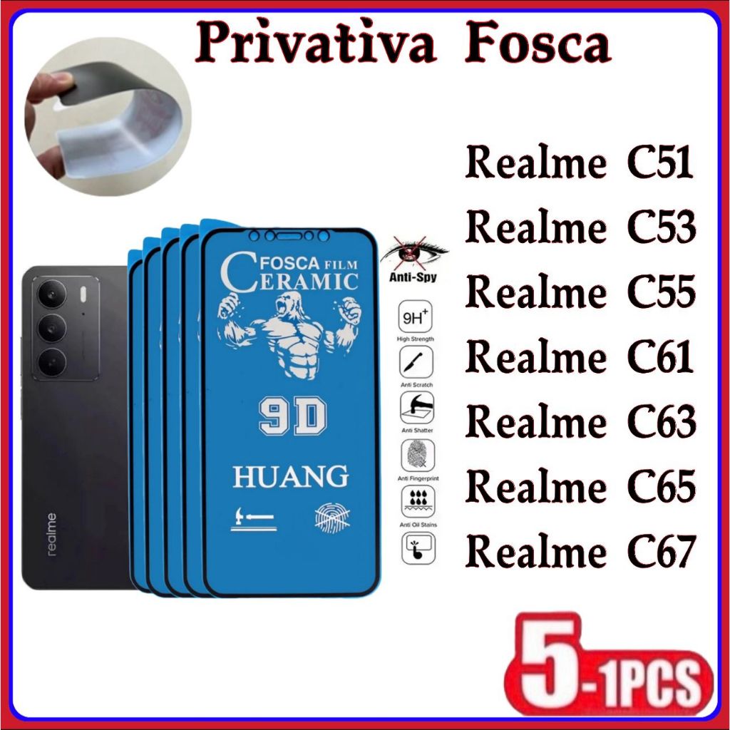 Comprar na ShopeePelícula Privativa Fosca Anti-Spy Matte Cerâmica Hidrogel Realme C51 C53 C55 C61 C63 C65 C67