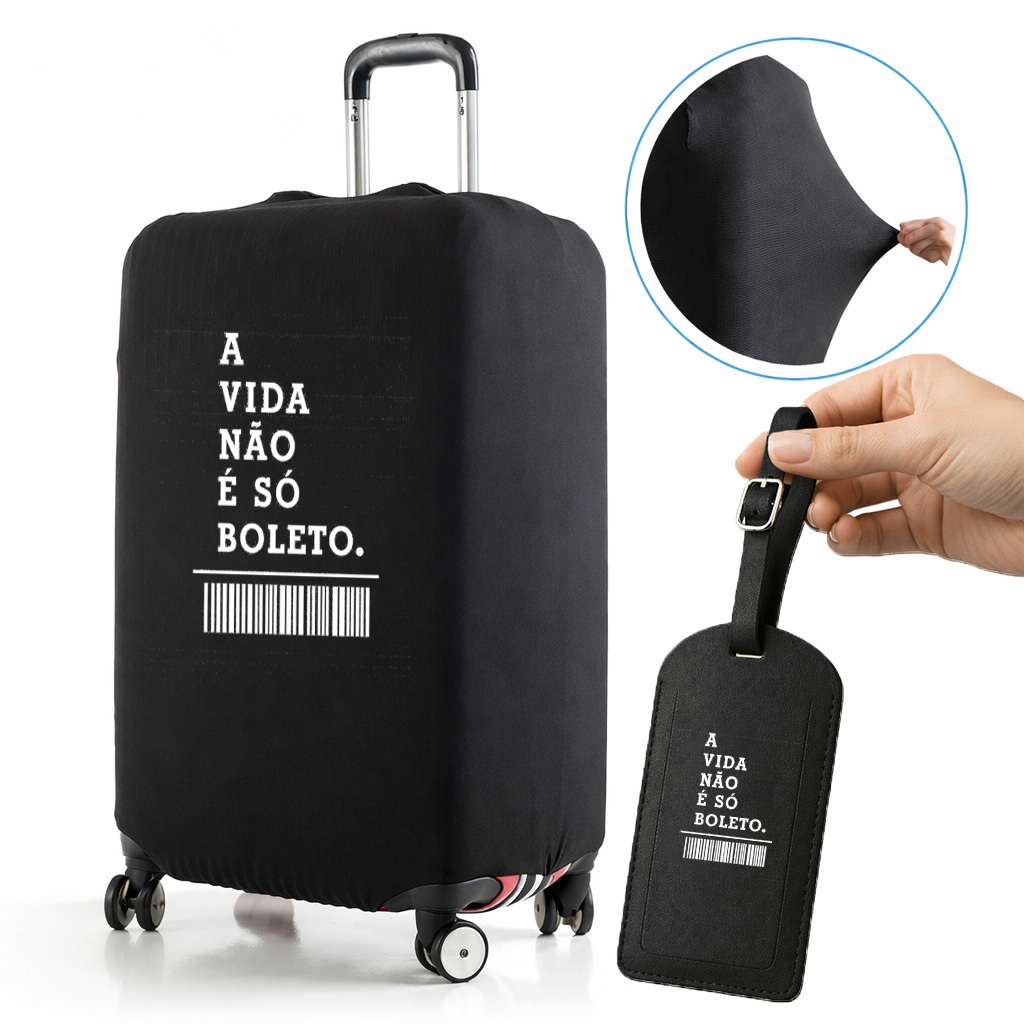 Comprar na ShopeeKit Capa De Mala + Tag Etiqueta Tecido Canelado Bagagem Elástica Para Viagem Protetora Premium